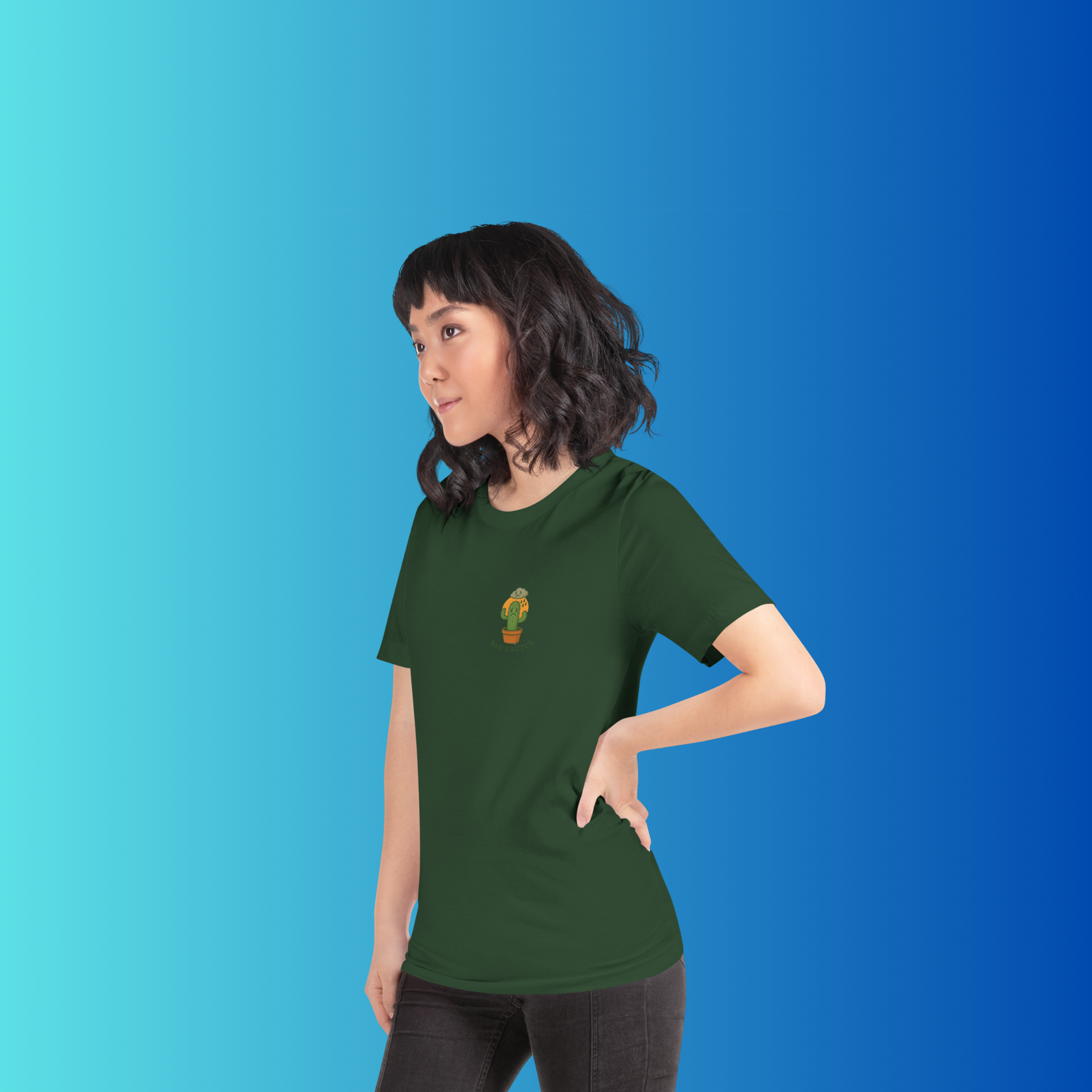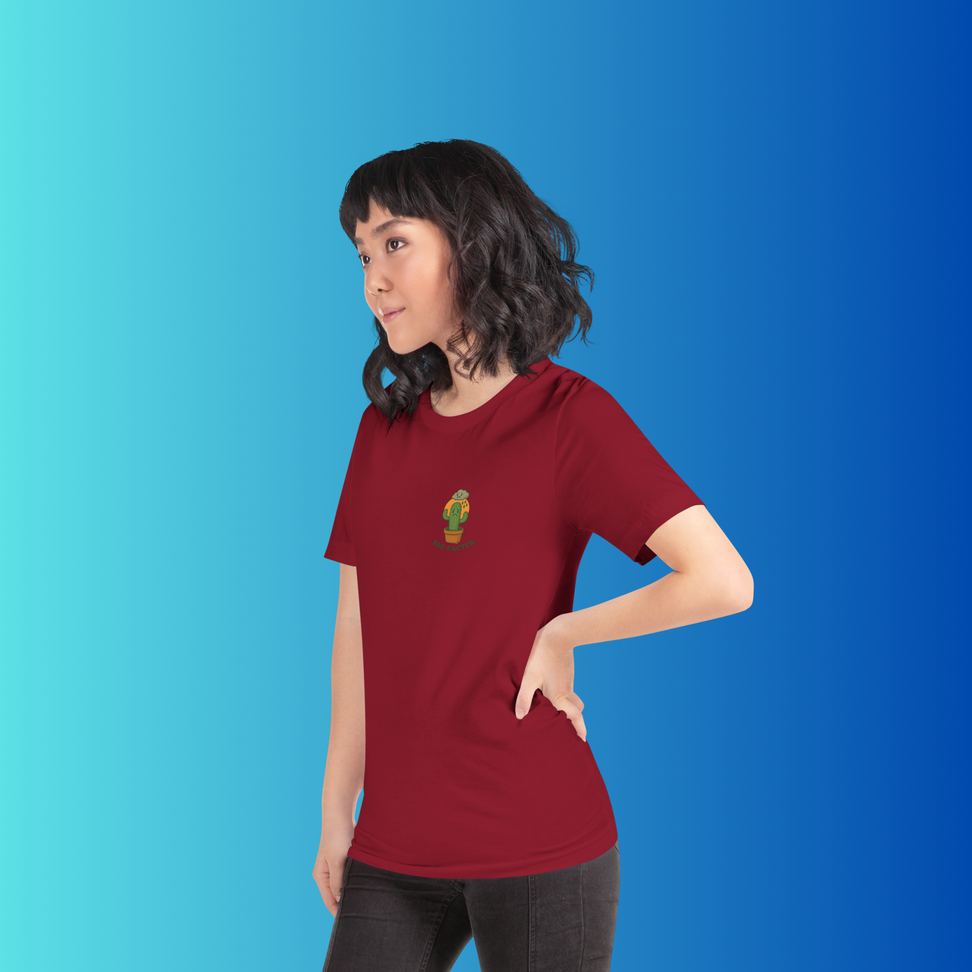 Even the toughest plants have their down days. Our Sad Cactus tee combines playful cartoon art with a touch of relatable humor, making it the perfect shirt for plant lovers, introverts, and anyone who appreciates a little mood with their style.